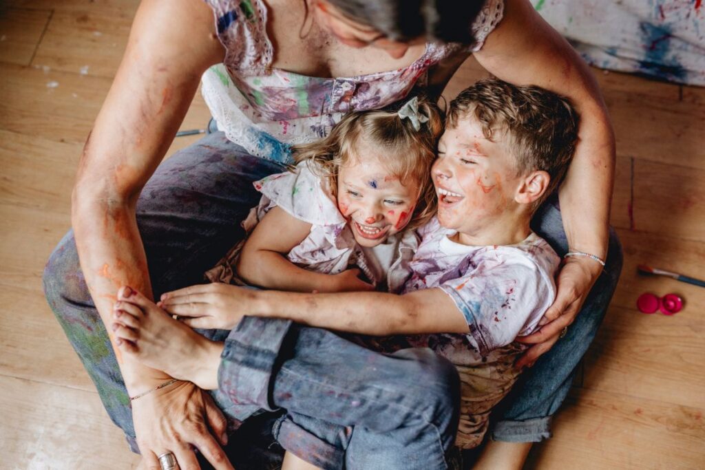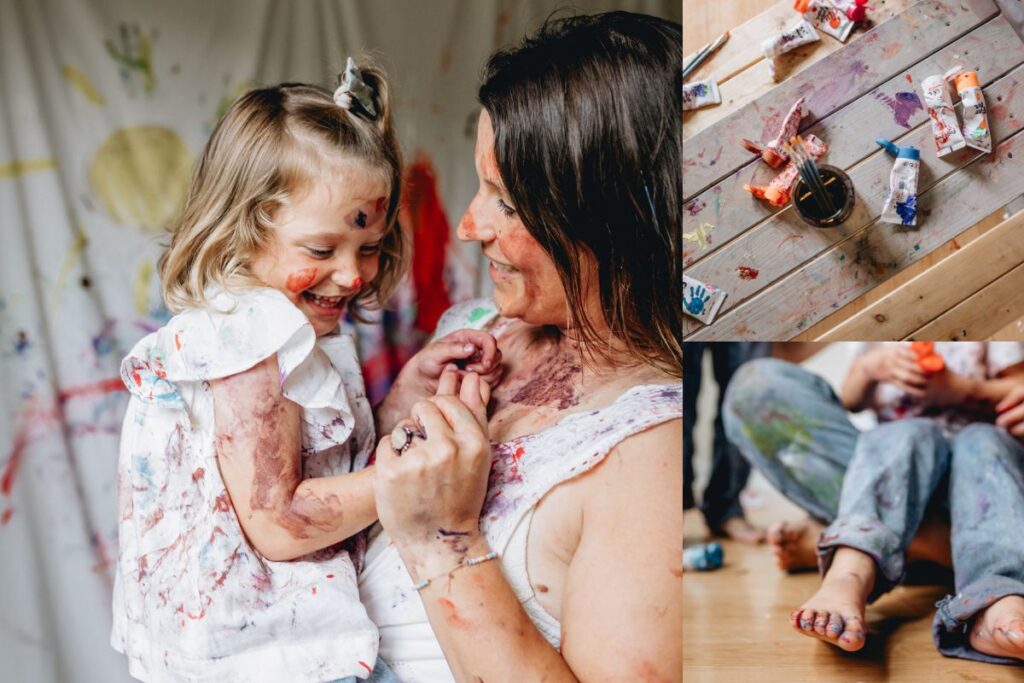 The goal isn’t perfectly posed images or kids looking at the camera. It’s letting moments unfold naturally – even if that means paint dripping down arms or someone deciding halfway through that they’d rather dance than paint.